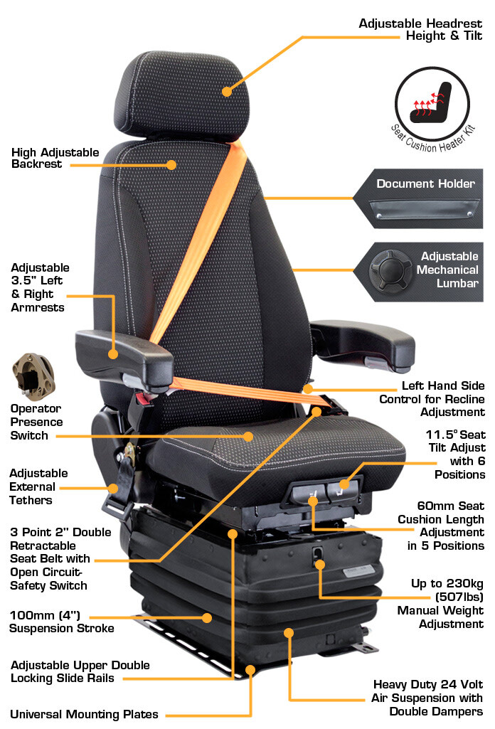 - Heavy Duty 24 Volt Air Suspension with Double Dampers
